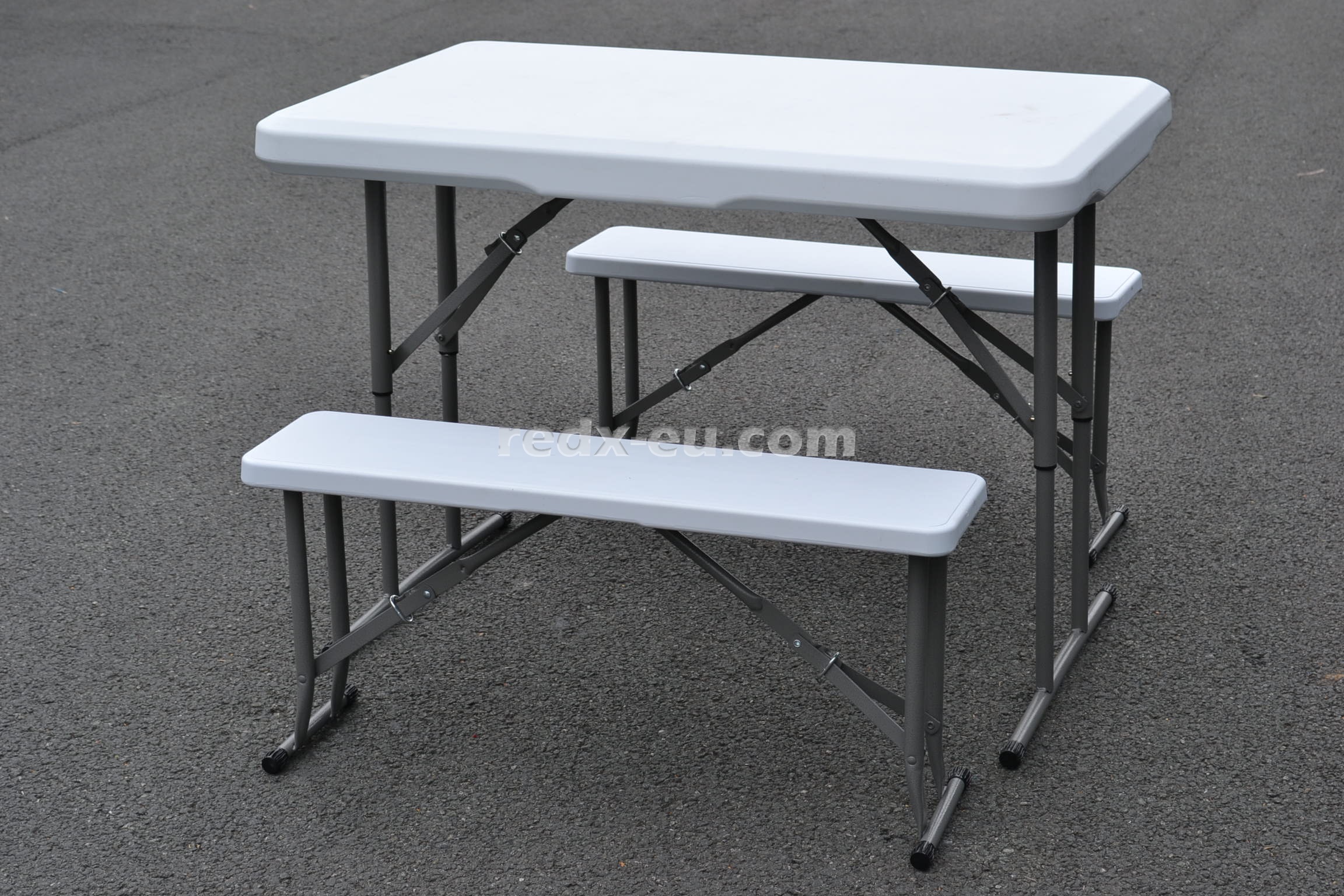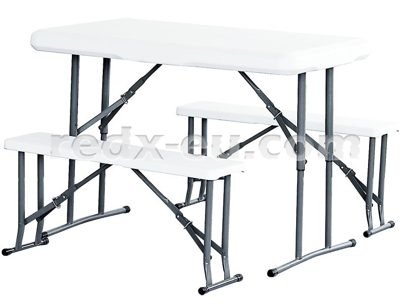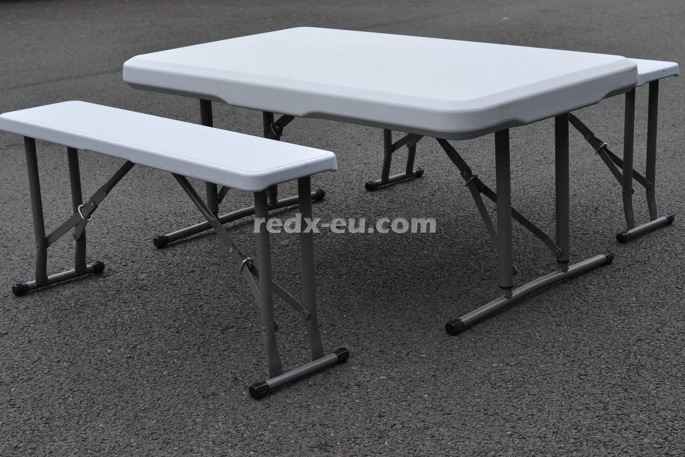 • Multi-use blow moulded foldaway robust table with 2 benches seating up to 4 people