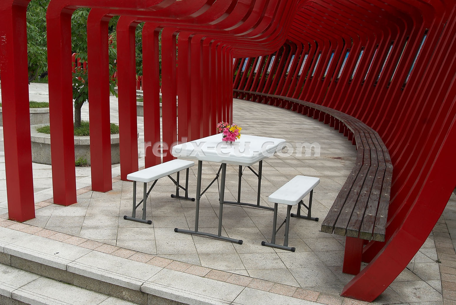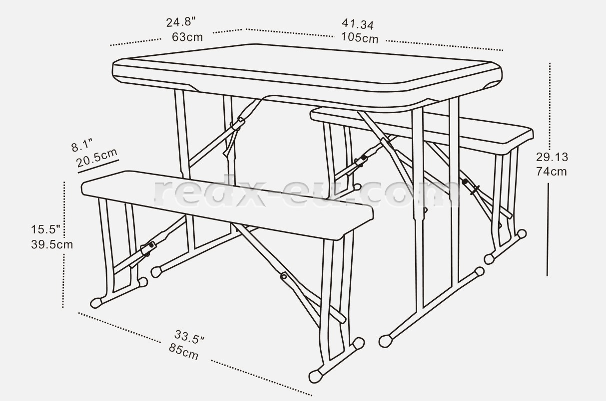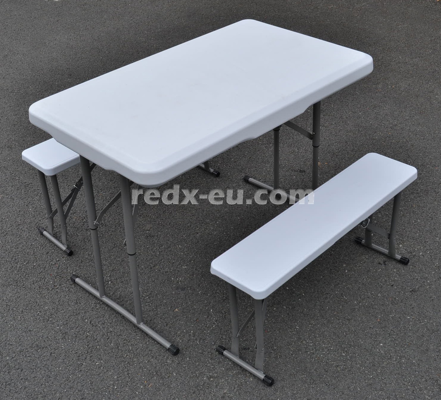 • Multi-use blow moulded foldaway robust table with 2 benches seating up to 4 people