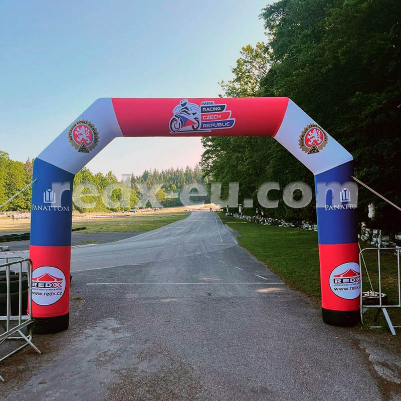 We can custom make not only these inflatable advertising structures, but also advertising printing according to your ideas and graphic requirements. You can choose between several types of design and shape of this inflatable structure - from the arched gate to the gate in the shape of a broken arch with/without lower bases. The printing of the cladding of the pneumatic structure is done by sublimation directly into the fabric structure. An alternative to printing directly onto the inflatable cladding is the addition of removable Velcro banners.